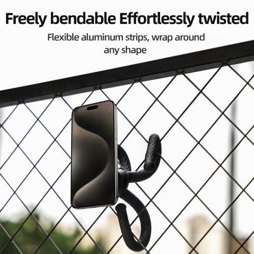 【Freely Bendable Phone Tripod】The phone tripod is equipped with flexible aluminum strips inside, which allows you to wrap the tripod for phone around the tree, metal mesh, pole and more, features a non-slip surface for enhance grip.