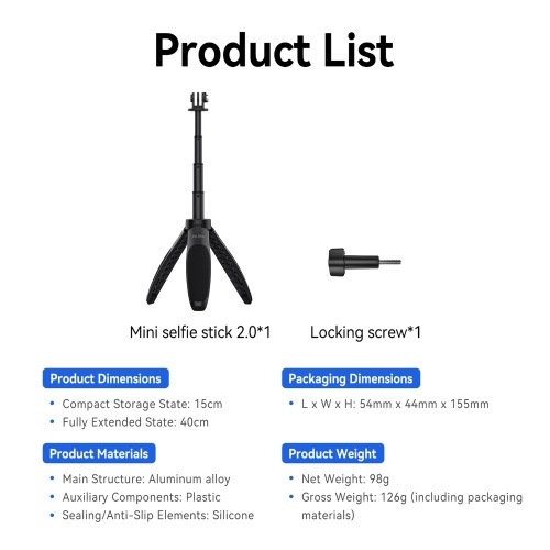 Wide Compatibility: Equipped with sports camera mounting head and with a long screw, the selfie stick tripod is compatible with most brands of sports cameras on the market.