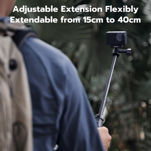 Extendable and Stable: With telescoping tube, the selfie stick tripod can be extended up to 40cm/15.7in. Aluminum alloy material, 3-leg design and non-skid rubber pads ensure the great stability and reliability.