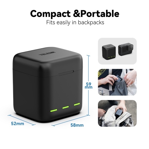3-Slot Battery Charger & Storage Box: As a battery charger, can fully charge up to 3 batteries simultaneously in about 2.5 hours; as a storage box, can store up to 3 batteries and 2pcs TF cards(not included), very convenient and practical.