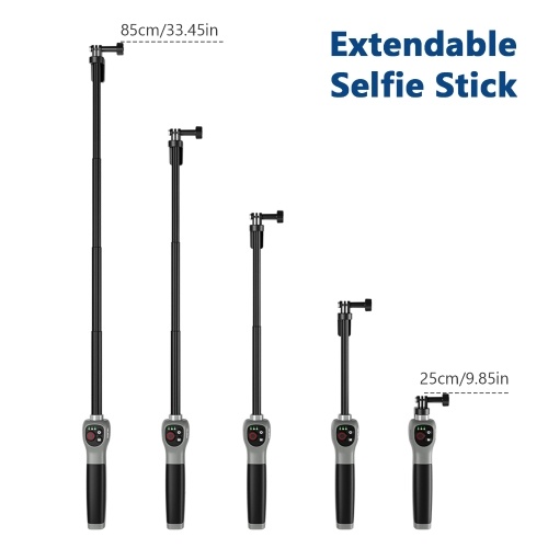 Extendable Selfie Stick: The selfie stick can be extended up to 85 cm/ 33.45 inch long, which provides you with a wider field of view for selfie or group photo taking.