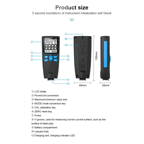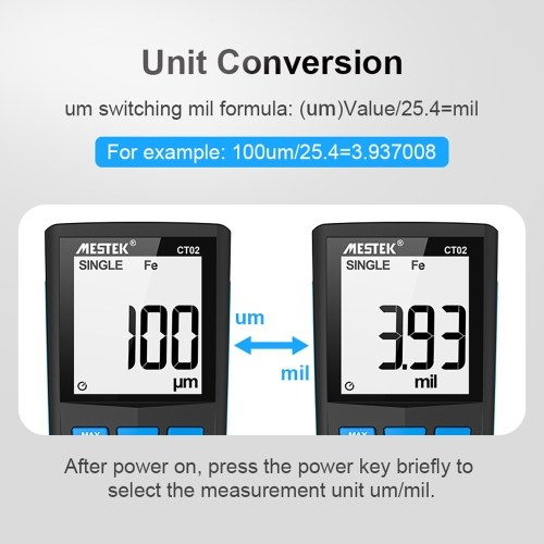 Multi-functional Design: Data clearing, μm/mil unit conversion, automatic switch-off for approx. 10 minutes without operation.