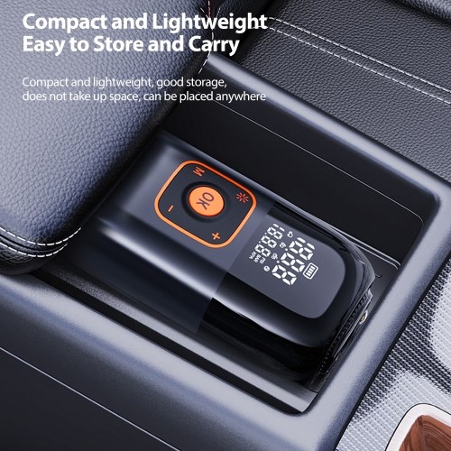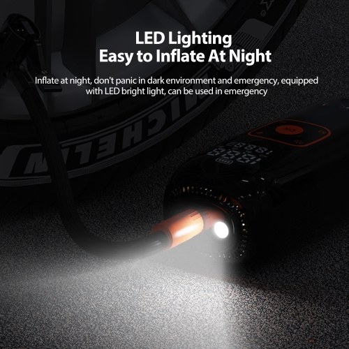 【Compact LED Emergency Light】It takes up very little space, so simply carry the air pump in your pocket, backpack or car, and it's ready to help wherever you are. The bright LED light makes your car air pump suitable for roadside emergencies and nighttime use.