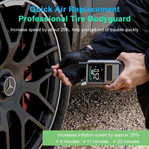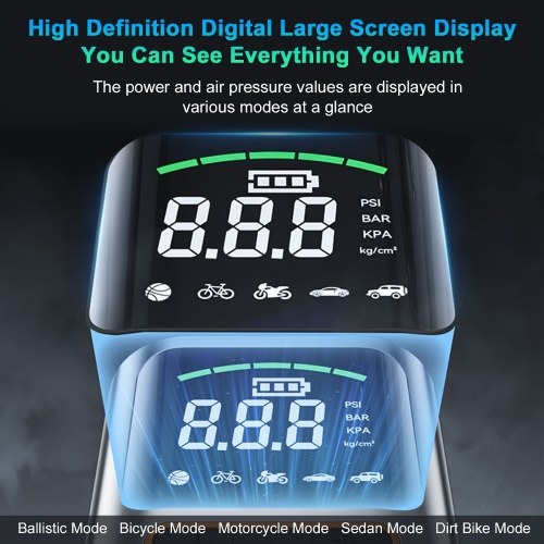 LCD Display & Auto Shut Off: The portable air pump for car tires has a built-in manometer and LCD display to provide accurate real-time pressure monitoring. It has a convenient preset tire pressure and auto shut-off function for worry-free inflation. It automatically stops when the desired tire pressure is reached, preventing over-inflation and ensuring optimal tire performance and safety.