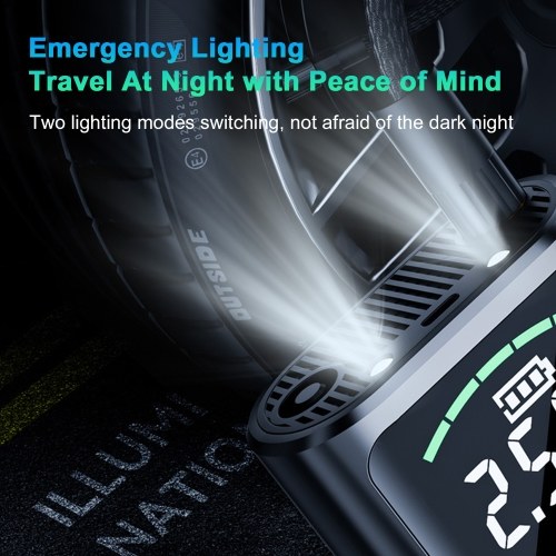 LED Light: In addition to inflating tires, this portable tire inflator also features emergency lighting, with two lighting modes switching to ensure you can use it at night.