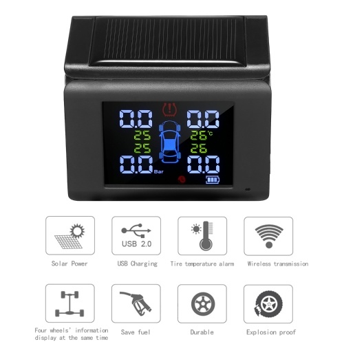 Auto Solar Power + USB Charge -- 800mah large capacity battery supports USB cable charging and auto solar charging. Adopt high grade durable solar panel our TPMS is solar automatic charged, without occupying the car cigarette lighter socket and manual charging, to ensure the tire pressure monitoring system could work continuously.