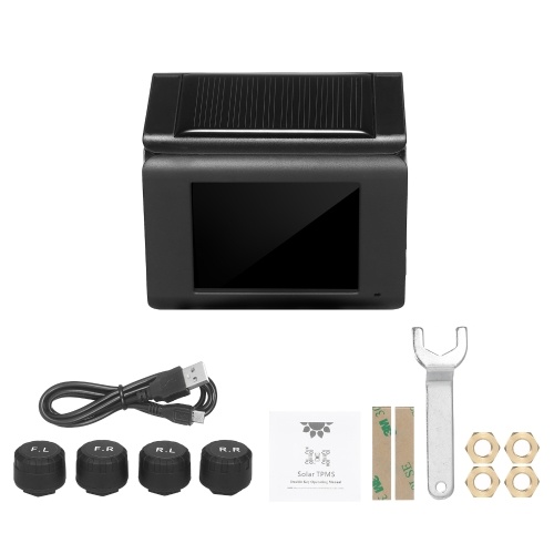 Mini Solar Powered Motorcycle Tire Pressure Monitoring System with 4 External Sensor for Real-time Synchronously Monitoring, 7 Alarm Modes for Early Abnormal Alert to Avoid Risk of Flat Tire, Reduce Vehicle Wear, Save Fuel Consumption and Improve Vehicle Comfortableness and Driving Safety. Suit for maximum tires pressure below 6Bar, like cars, commercial vehicles, off-road vehicles, jeeps and minibuses.
