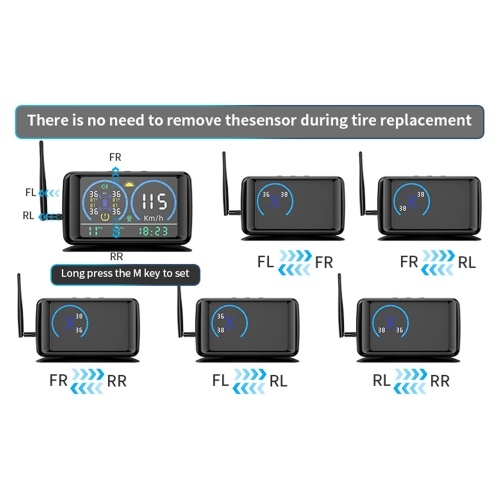 Real-time Monitoring and Four Alarm Modes: Air leakage alarm, low pressure alarm, high pressure alarm, high temperature alarm, you can set the upper and lower limits of alarm pressure by yourself. Real-time monitoring and accurate alarms to prevent tire blowout.
