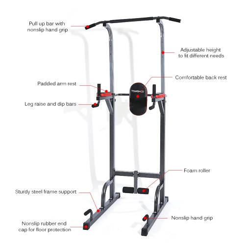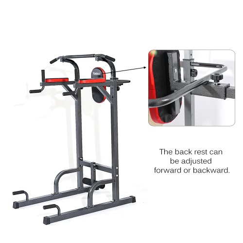 Multi-station exercise station for performing different workouts stand for knee raise, pull-ups, push-ups, sit-ups, dips. The long-term durability combined with great functionality will make this power tower your choice in body weight resistance machine, perfect for home or gym training.