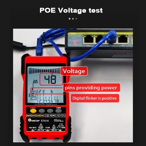 POE Test: POE testing can check cable mapping polarity and voltage of POE network switches.