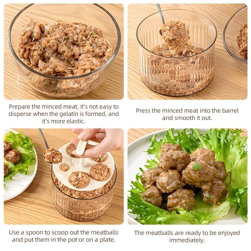 【Durable and Easy to Clean】: Crafted from high-quality materials, this translucent meatball maker is built to last. Its sturdy construction ensures long-lasting durability, while its detachable design makes it easy to clean after use. Simply disassemble the parts, rinse them under running water, and dry them thoroughly before storage. This convenient cleaning process ensures that you can enjoy hassle-free meatball making for years to come.