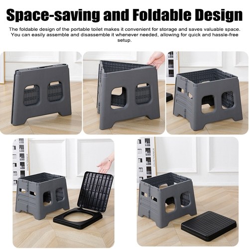 Space-saving and Foldable Design: The foldable design of the portable toilet makes it convenient for storage and saves valuable space. You can easily assemble and disassemble it whenever needed, allowing for quick and hassle-free setup.