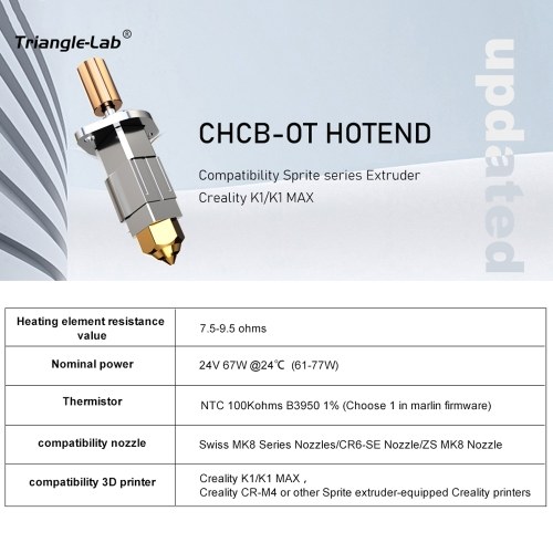 CHCB-OT hotend is a hot end component, it can compatible with Creality K1 or K1MAX or CR-M4 printer.