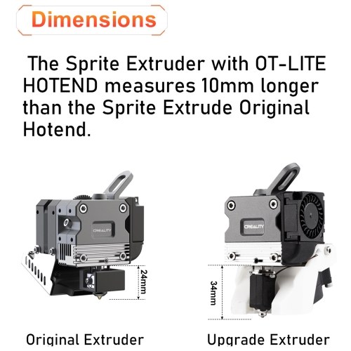 The Sprite Extruder with OT-LITE HOTEND measures 10mm longer than the Sprite Extrude Original Hotend.