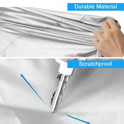 Love this cover and worth the money! It has elastic on the front end and the rear end along with a strap in the front and one in the back that you can put thru your wheels to help keep this in place during wind.