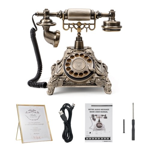 ☎ Reliable and Sturdy: Made from durable ABS material, this vintage audio guestbook phone is designed to last. Unlike flimsy alternatives, it can withstand daily use for years. With dimensions of approximately 9.84 x 9.1 x 7.1 inches/ 25 x 23 x 18 cm, it's compact and convenient. Please confirm the size before purchasing.