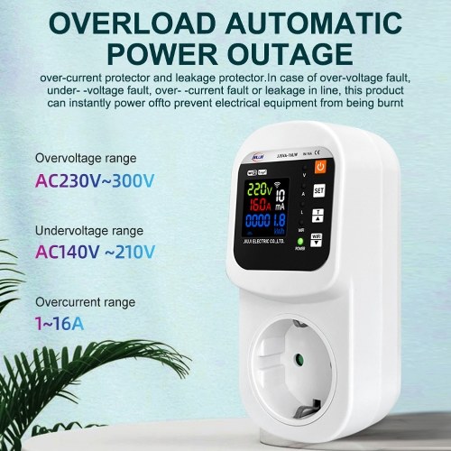 【Digital Display】: The device features a digital display panel with large font for easy reading, allowing you to see the data clearly at a glance. The protector can display leakage, over and under voltage, over current, kilowatt, power factor, frequency, kilowatt-hour, and prepaid power values.