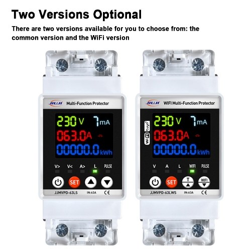【Two Versions Optional】: There are two versions available for you to choose from: the common version and the WiFi version. You can choose according to your needs. The WiFi version can be controlled by your cellphone via the Tuya APP. The over-voltage, under-voltage, over-current, and leakage protective values of this product can all be set up by you and adjusted based on local practical conditions.