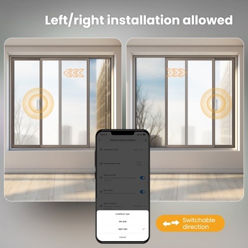 Left/right installation allowed: Suitable for different window opening directions, the installation of different directions can be set on the app. The flexible adjustment helps use easily.
