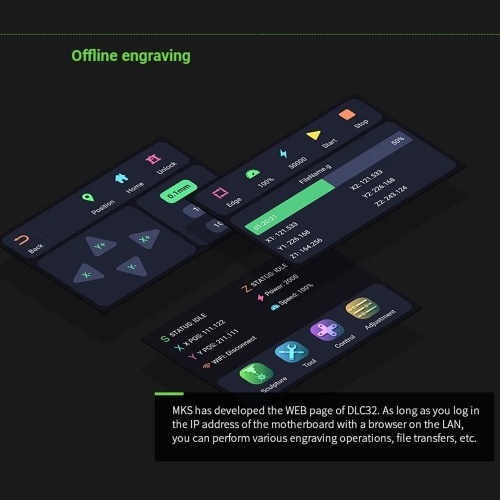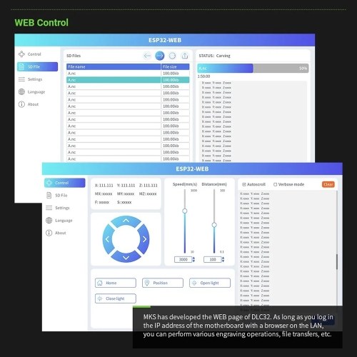 ▶ MKS has developed the WEB page of DLC32. As long as you log in the IP address of the motherboard with a browser on the LAN, you can perform various engraving operations, file transfers, etc.