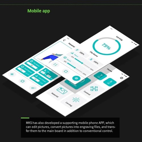 ▶ It also developed a supporting mobile phone APP, which can edit pictures, convert pictures into engraving files, and transfer them to the main board in addition to conventional control.