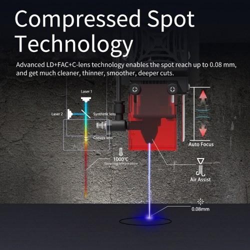 It only takes 7 days from placing the order in the Chinese warehouse to receiving the goods, which is an impressive speed. And the packaging is intact and the accessories are complete, I am very satisfied. After receiving the package I couldn't wait to assemble and inspect it. This engraver adopts advanced LD+FAC+C lens technology to achieve a spot size of 0.08mm for cleaner, thinner, smoother and deeper cuts. In addition, the autofocus laser, without manual adjustment, is undoubtedly a very nice feature. Overall this is a great engraver!