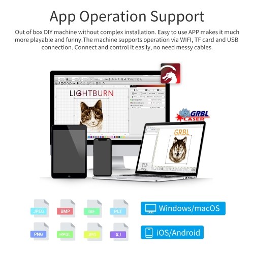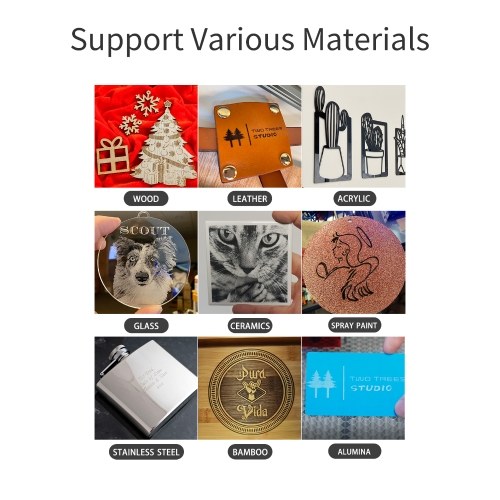 TS2 has 10W laser power, advanced LD+FAC+C lens technology makes the light spot reach 0.08mm, and obtains cleaner, thinner, smoother, deeper cuts, and the engraving effect is also very good.