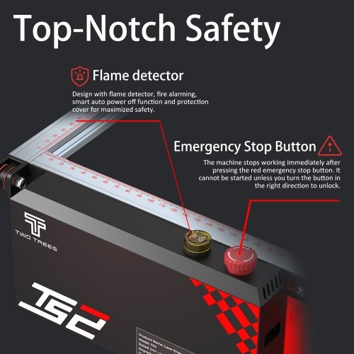 The first time I bought a laser engraving machine, when I received the package, the package was intact and the accessories were complete. I was really amazed with this machine, it was easy to set up, about 1.5 hours to assemble, then I started the burn test. In case of emergency, the emergency stop button is activated and the work is suspended with a key, which protects the machine well. I have to say it's a great machine.