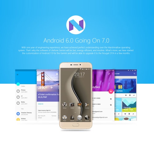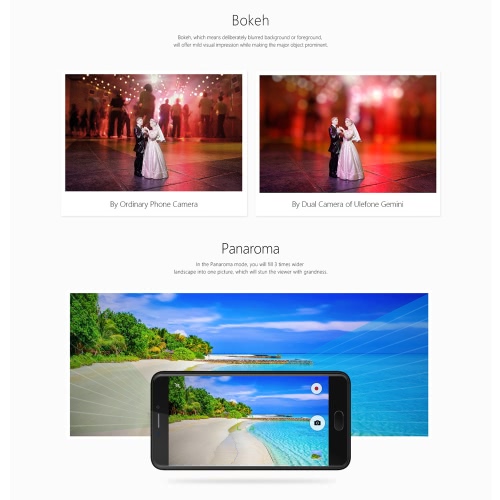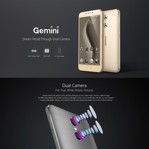 This item features a 5.5" multi-point capacitive touch screen with 1920 * 1080 resolution, dual SIM card and dual standby design, equipped with MTK6737T Quad Core 1.5GHz CPU Android 6.0, 5MP front camera and 5MP 13MP DUAL back cameras with flashlight and auto focus, 3GB RAM and 32GB ROM, which supports GPS, Gravity sensor, etc.