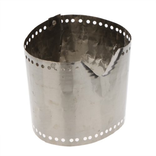 There are magnetic closures fixed together, a space at the bottom for the fuel line and a space at the top for the handle of the pot. It fits in a 6-inch wide can, like the Evernew 1.3L Titanium Pot, which weighs 0.5 ounces. Crumpled on arrival without affecting performance.