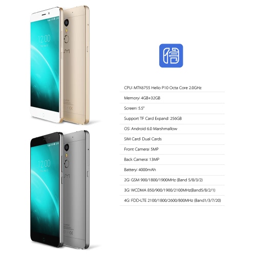 This item features a 5.5" multi-point capacitive touch screen with 1920 * 1080 resolution, Dual cards standby, equipped with MTK6755 Octa Core 2.0GHz CPU Android 6.0, dual cameras, 4GB RAM and 32GB ROM.