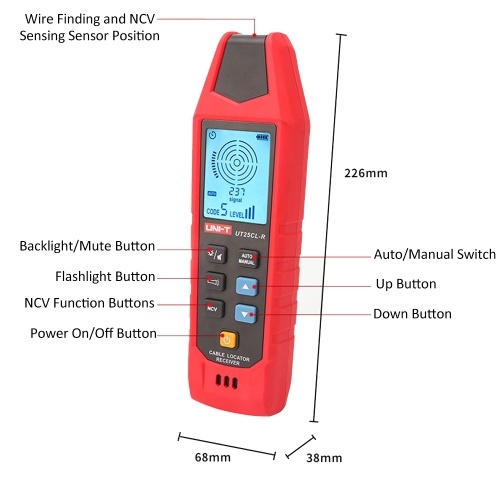 Non Contact NCV Function (Receiver Only): The NCV (non-contact electrical verification) mode is used to verity whether the cable is live or to track the cable without using the transmitter.