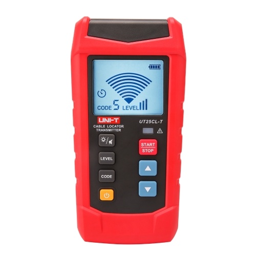 UT25CL Handheld cable locator can be used to detect the path of low-voltage cables buried in ground (such as cabling inside wall); test and diagnose opens, shorts and other problems occurring at cabling; and detect if the tested cable is energized. The transmitter can display corresponding voltages (voltage of energized cable: ≥8V), and the receiver can simultaneously display the signal strength, transmitter code, transmitter power level, low battery, etc. UT25CL has multiple advantages including accurate measurement, easy operation, visualized display, and more, making it an ideal tool for low-voltage cabling engineering, engineering and maintenance of metal conductors, etc.