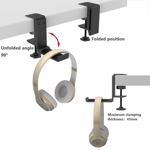 Foldable Hook Design: When the headphone holder is not in use, the hook can be folded up, very space saving; when you want to hang your headphone on the holder, you just need to unfold the hook to 90 degree, very convenient and flexible to use.