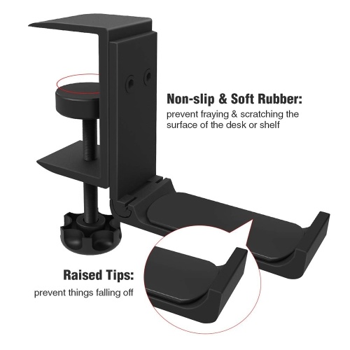 Wide Applications: the arm of the headphone holder is long and wide enough to hold any size headphones, and other items like umbrella, backpack, handbag, shopping bag, etc.