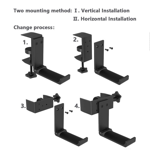 Two Simple and Convenient Installation Ways: 2 groups of screw hole design allows you to install it on horizontal or vertical surfaces, and the maximum clamping thickness is 4.5cm; easy to install and remove, and the soft silicon gasket on the screw top will protect your desk from damage.