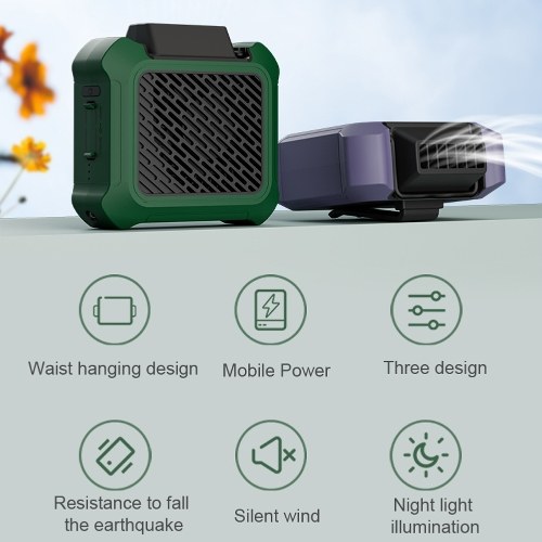 This waist-mounted fan adopts illumination system, elastic waistband clip, insert waist clampis more stable, completely hands-free design, specially designed for high-temperature workers. Three gears of airflows adjustment, you can choose the appropriate air volumes freely according to your demands, and give you a more comfortable cooling experience. 2in1 recharging+cooling combo design, built-in 6000mAh lithium battery, 5A/2V output, can give emergency recharging of mobiledevices. Equipped with LED light for illumination use, which can be used as night light for outdoor camping use.