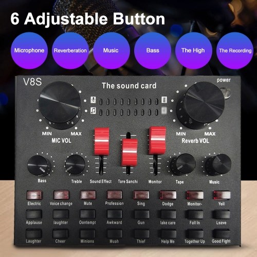 The sound adapter is conveneint to to carry, plug and play, simple and time-saving. Built-in large capacity rechargeable cell, long time use with low energy consumption, energy saving. Professional reverb, multiple sound effects one-key switch, pure sound quality, independent adjustment.