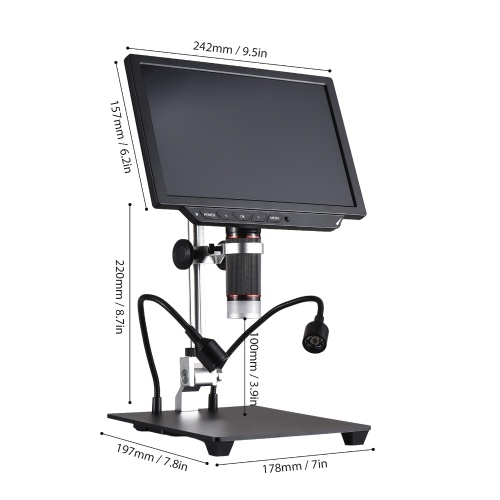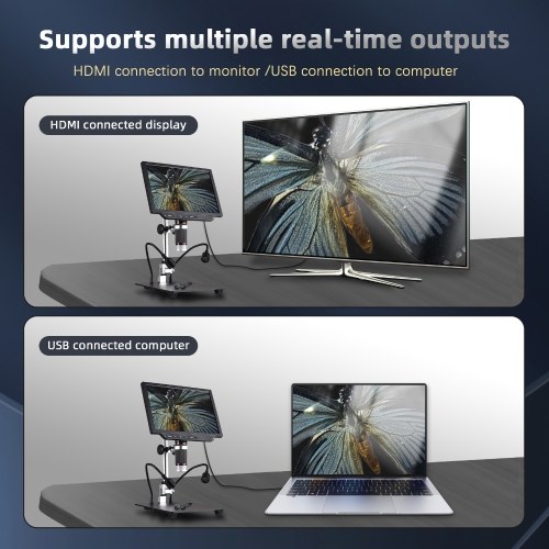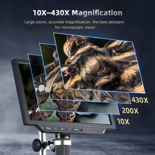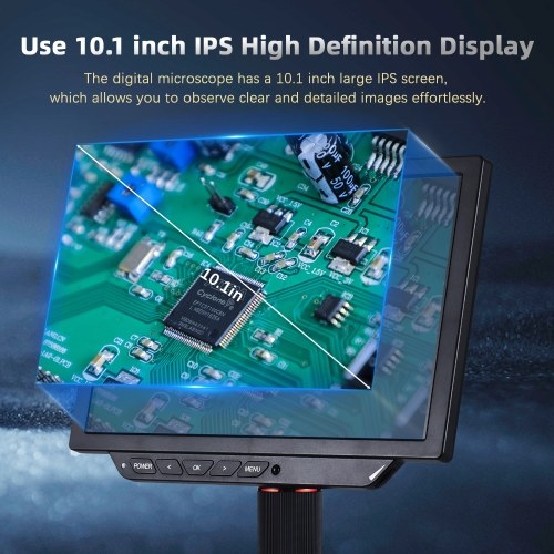 10.1 Inch Large IPS Screen: The digital microscope has a 10.1 inch large IPS screen with 1280x800 resolution, which allows you to observe clear and detailed images effortlessly. What's more, you can also connect the digital microscope to PC or TV via the included connection cable and view objects on bigger screen conveniently.