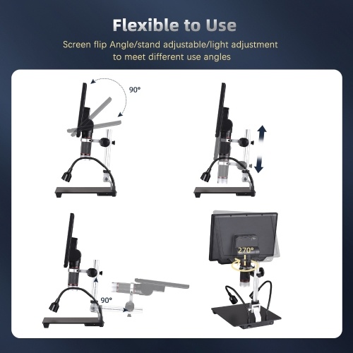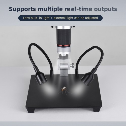 Dual Light Sources: Except the LED fill lights around the lens, the digital microscope is also equipped with two flexible spotlights on the side, which provides adjustable lighting in all directions to adapt to different light environments, making the observation clearer.