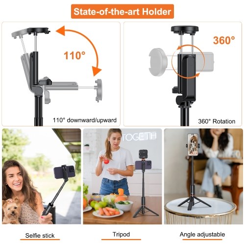 【Versatile Selfie Stick Tripod】Experience the ultimate versatility with this innovative 2-in-1 bracket, seamlessly transforming between a handheld extendable selfie stick and a sturdy desktop tripod. Perfect for capturing stunning selfies, vlogs, and live streaming content with ease.