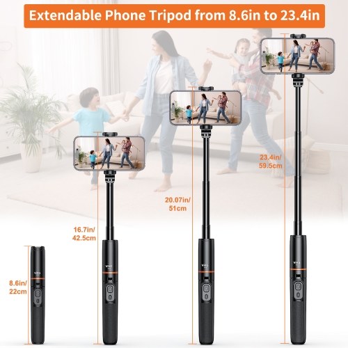 【Compact and Convenient】Featuring a folded length of 22cm/8.6in, this selfie stick tripod is ultra-portable and effortless to carry in your backpack. Ideal for on-the-go use, it serves as the perfect travel companion for capturing memories wherever your adventures take you.