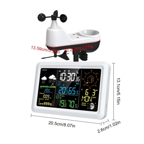 Weather Station Size: 205 * 131 * 26mm / 8.07 * 5.15 * 1.02in
