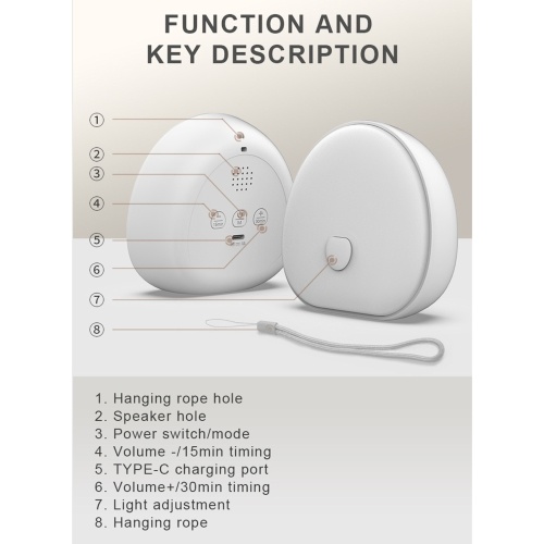 White noise design: This sleep instrument has built-in white noise and natural sounds (such as waves, wind, rain, etc.), which can effectively block environmental noise, create a quiet and comfortable sleeping environment, and help users fall asleep faster.