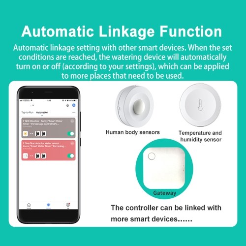 【Flexible Control and Automation】: The Tuya APP allows you to easily control the water timers for garden and yard through your smartphone or tablet. You can set customized watering schedules, adjust water quantities, and even create automation scenarios for seamless integration with other smart devices in your home. Experience the convenience of smart sprinkler controller and enjoy a lush and thriving garden effortlessly.