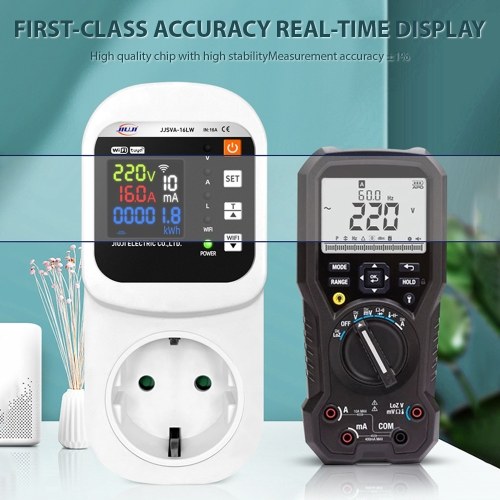【Wide Application】: This product is suitable for a wide range of applications including homes, hotels, offices, shopping malls, and electronic devices. It features real-time voltage display, mobile phone remote control, real-time current display, real-time power display, real-time leakage display, and manual calibration.