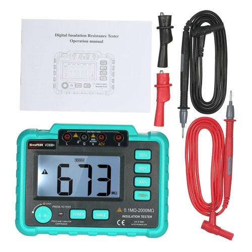 Insulation Range: 250V: 0.1MΩ~20 MΩ/20MΩ~500 MΩ; 500V: 0.1MΩ~50 MΩ/50MΩ~1000 MΩ; 1000V: 0.1MΩ~100 MΩ/100MΩ~2000 MΩ