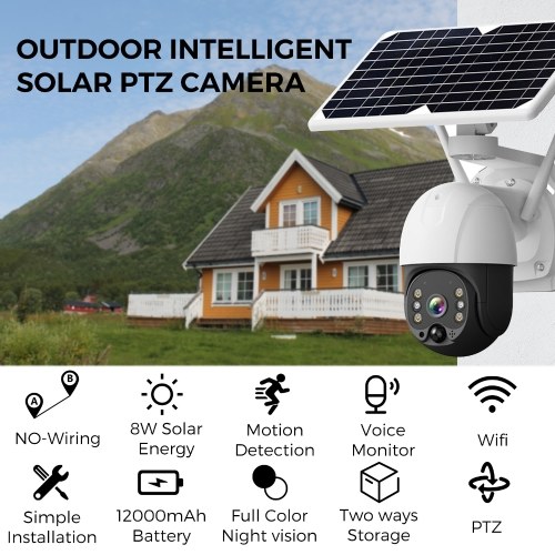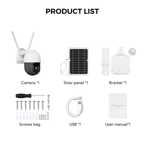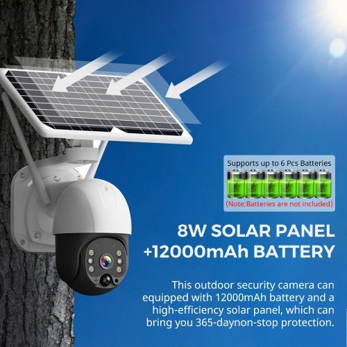 Description: The wireless solar panel security camera powered by built-in rechargeable batteries (battery not include) and solar panel. 355°horizontal & 90°vertically rotation range&120°viewing angel provides a complete 360°Panoramic viewing, you can enjoy 1080P full HD image and video day and night. Solar security camera supports night vision, PIR motion detection and two-way audio.