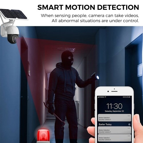 PIR Motion Detection: Smart PIR human detection technology reduces the false alert. When surveillance camera detects human movements, other leaves or insects will not trigger the alert, and app notification will be push to your smart phone immediately.