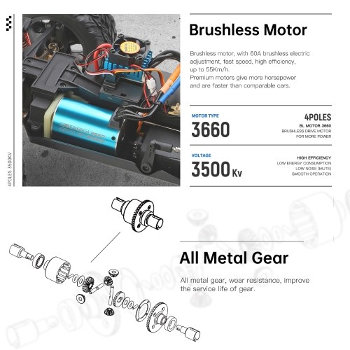 High Quality Accessories: Four wheel independent suspension system, simulating hardware oil shock absorption, all zinc alloy gear, strong wear resistance, and improved gear service life.